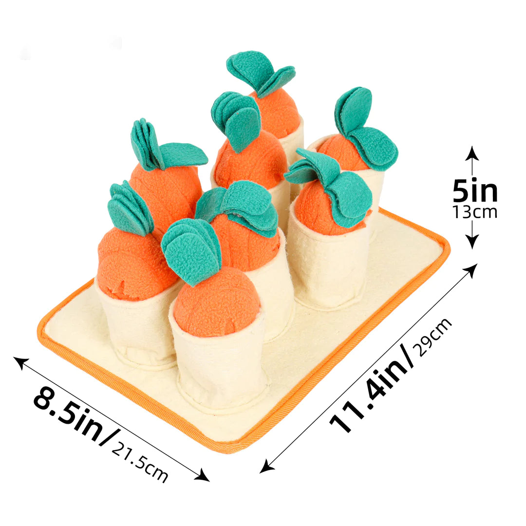 Show your pup how what it's like to eat in the wild with Injoya's "Carrot Patch" Snuffle Feeding Toy. This toy for dogs helps to slow your dog's food consumption while stimulating their minds. Made of non-toxic and durable materials and makes meals fun. Machine washable and perfect for small to large dog breeds.
