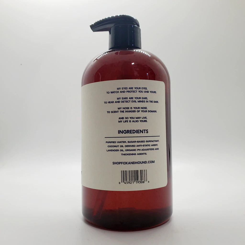 Ingredients: Purified water, sugar-based surfactant, coconut oil derived anti-static agent, lavender oil, organic PH adjusters, and thickening agents