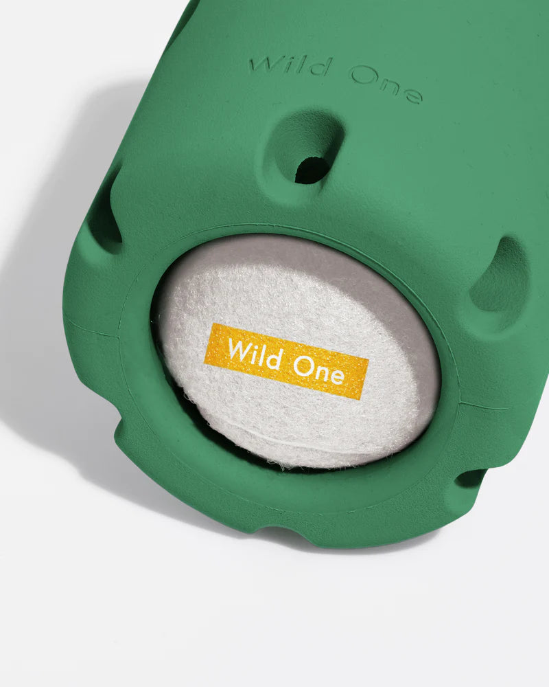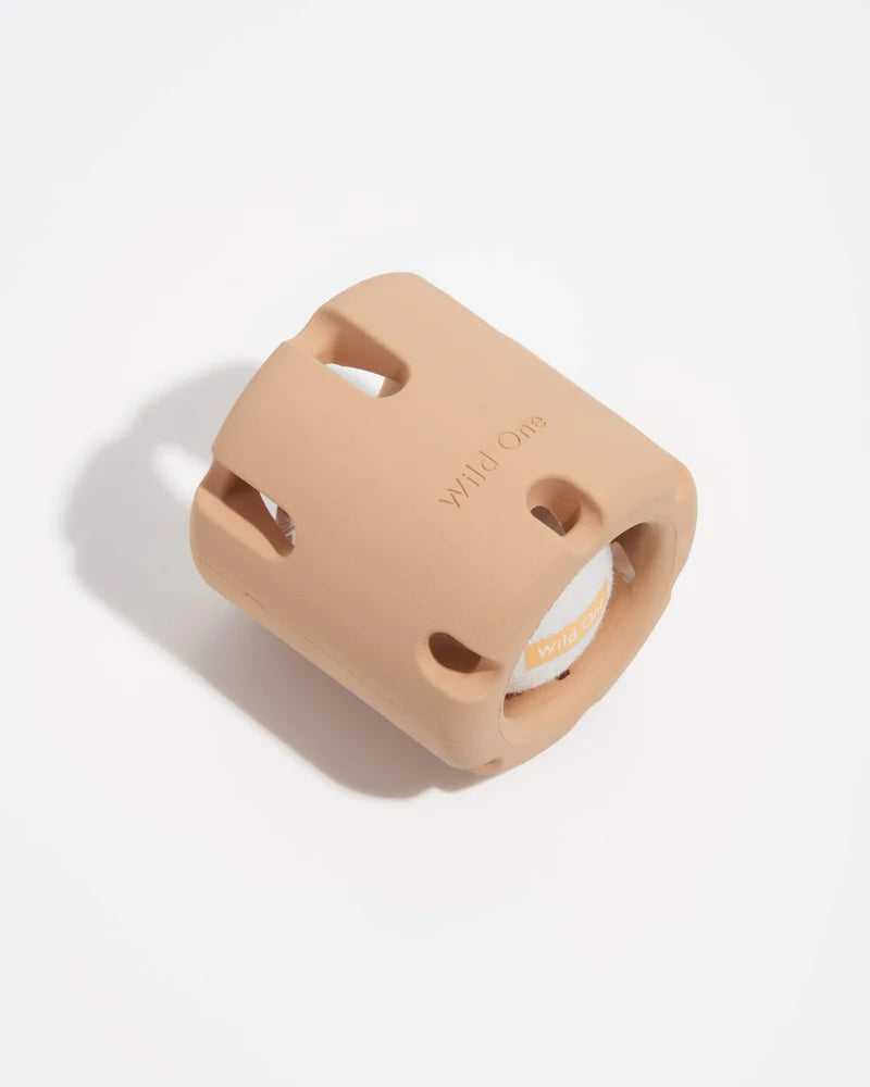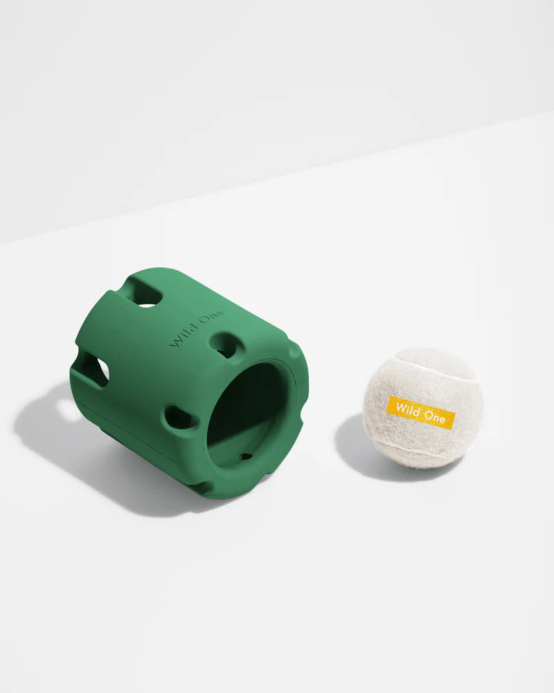 Meet the ultimate puzzle toy for pup development, that also boasts hours of solo play! If you’re seeking a doggy distraction while working from home, they’ll be entertained and challenged until, well…you take it away from them! The Tennis Tumble features a barrel shape made from durable natural rubber, fitted around a trapped Tennis Ball that’s tough for pups to retrieve. The cylinder shape makes it perfect for rolling and paw pushing, while the slatted walls allude to the surprise inside. It’s time to test your pup’s smarts! BPA-free and tested to meet food-safe standards.